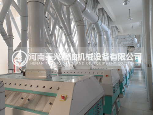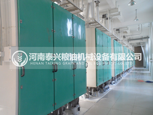 300噸級面粉機組是我廠結合國內實際情況,由小麥面粉設計研發中心走創新之路設計而成的大型鋼架式成套面粉機組。該設計突破了傳統設計的局限性,具有國際領先水平。清理工藝采用三篩、兩打、二去石、一洗麥、二磁選等多道工序;制粉采用4-5道皮磨,6-7道心磨,2-3道渣磨,并配有清粉機、打麩機、撞擊,松粉等輔助設備,磨粉機采用先進的氣壓式復式磨,制粉工藝先進,輕研細磨,粉路長,面粉質量高,可生產多種等級粉和專用粉。鋼架式結構投資少,建效快,建設周期短,占地面積小,我公司同時提供前期設計,生產,后期安裝,調試,技術培訓,技術咨詢的一條龍服務。
