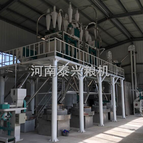 這款石磨面粉機組是河南泰興糧機公司在延安地區安裝的一套8+1工藝石磨面粉機組,主機有8臺石磨和一臺鋼磨組成,該工藝既能實現石磨面粉加工的低溫研磨優勢又彌補了石磨面粉機產量低的缺點,實現高產高效。